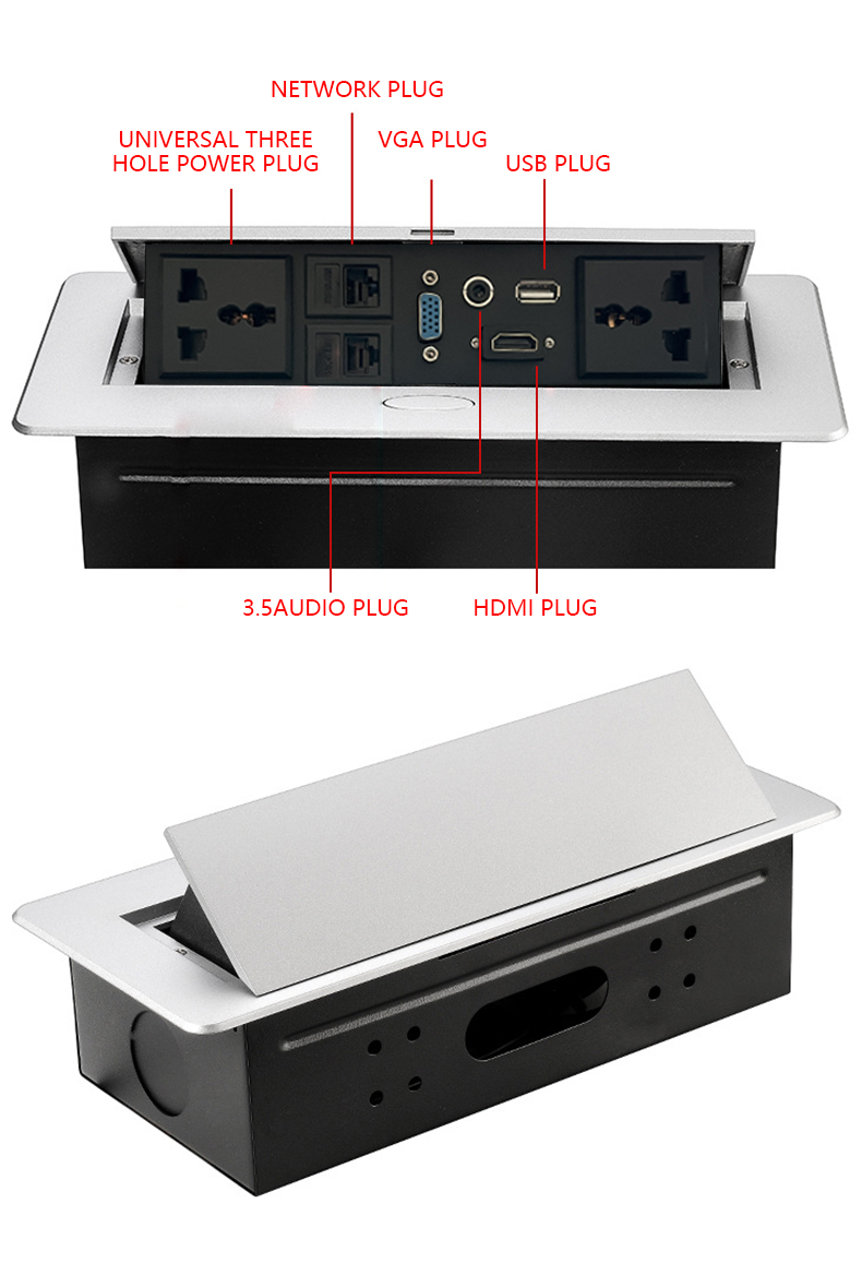 Desktop Multimedia Outlet and Plug AC power Meeting Table Embedded Sockets Furniture Hidden Plug Power Socket